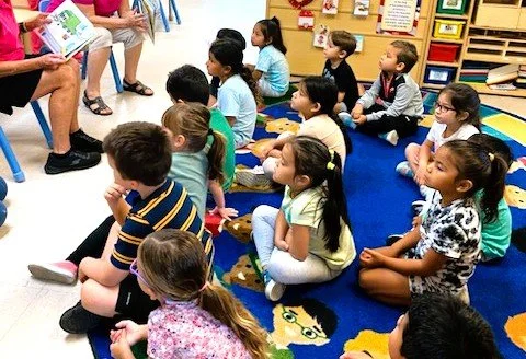The number of children in a classroom varies by the age of the child. One- and two-year-old classes have approximately 8 children for every two teachers. In three- and four-year-old classrooms, this varies from 15 to 20 children for every two teachers.